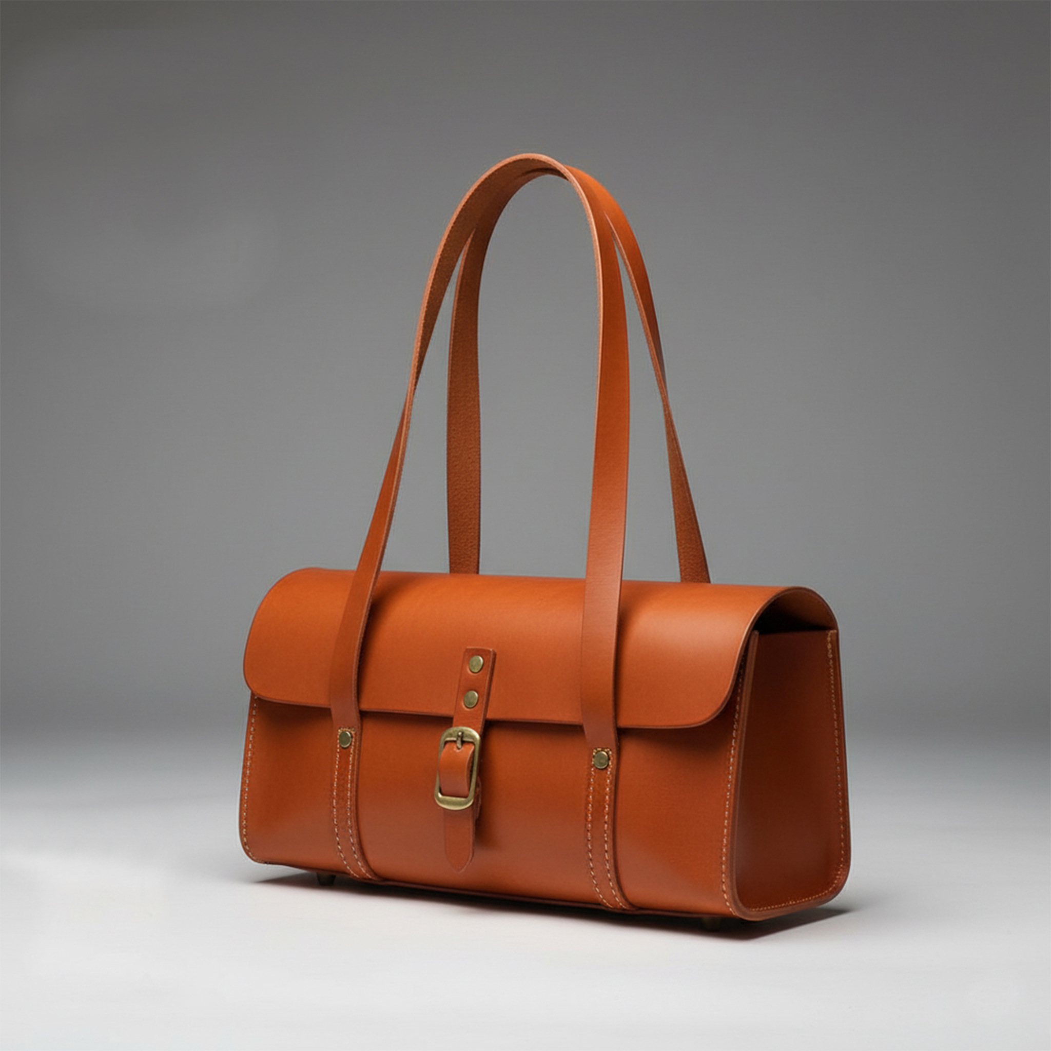 Classic utility meets modern refinement. The Heritage Barrel Satchel is a masterclass in structured elegance, designed for those who value both form and enduring quality. With its distinct cylindrical silhouette and warm, honey-oak finish, this bag is a timeless investment for any wardrobe.