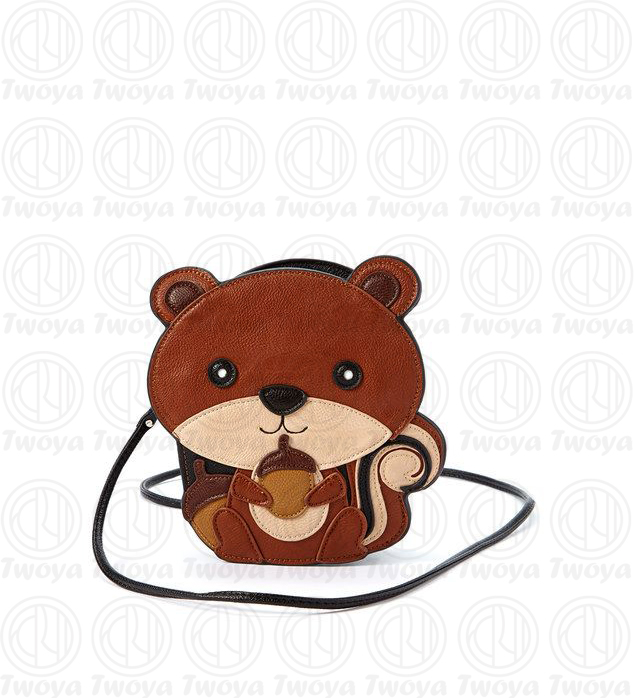 Artisan Squirrel Appliqué: The front of the bag features an intricate, multi-layered squirrel motif complete with a bushy curled tail, stitched facial details, and a cute acorn held in its paws.