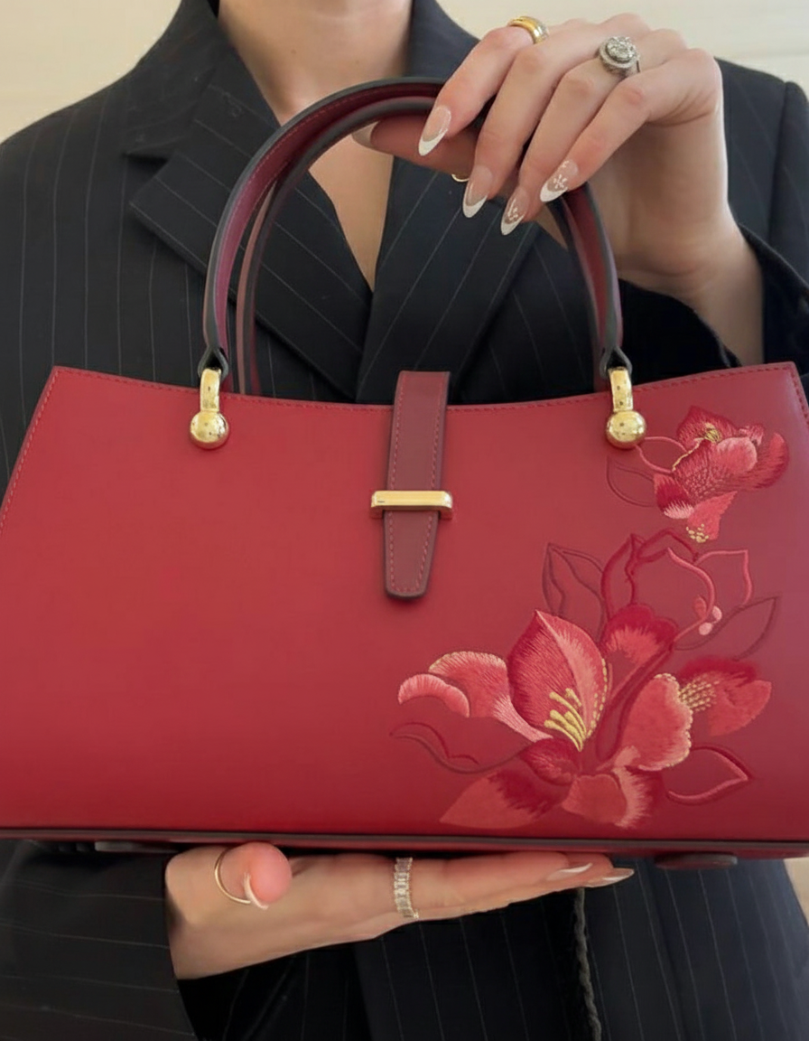 red, this bag is a true head-turner, designed for the sophisticated individual who