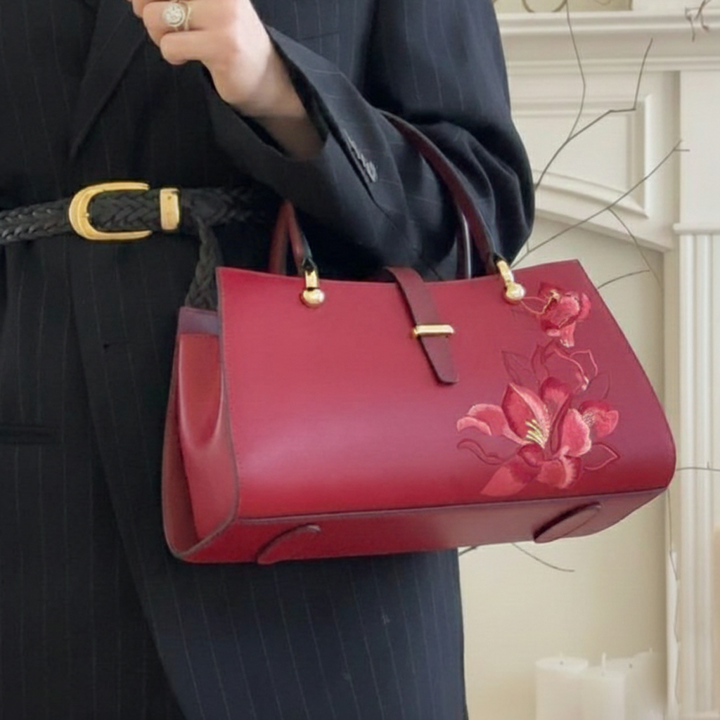 The Hand-Painted Floral Structured Satchel: Bold Elegance